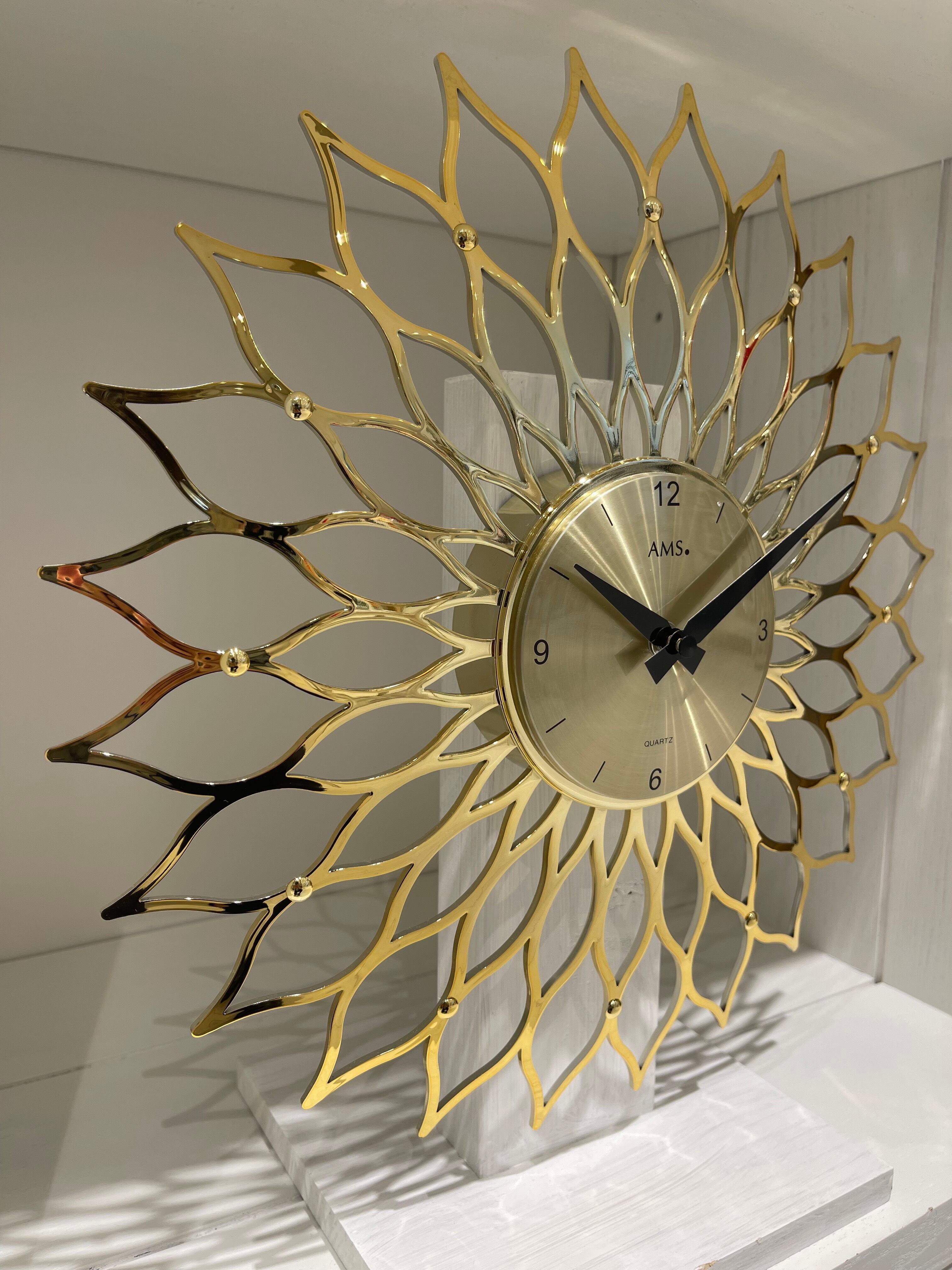 ドイツ直輸入の掛け時計。直径約39cmと手頃なサイズでゴールド色がとても綺麗な掛け時計。プラスチック製なのでとても軽くデザインが特徴的で大人気のおしゃれな掛け時計です。