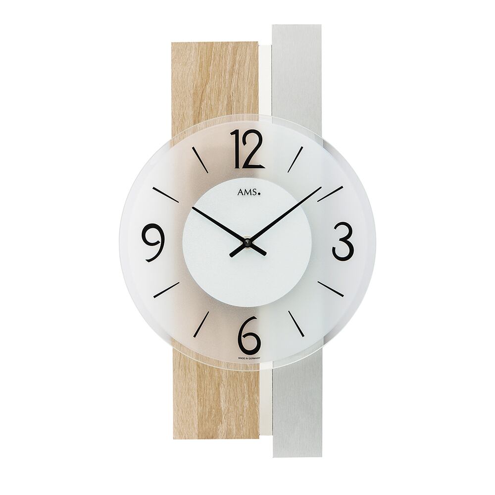 シンプルでスタイリッシュ、そしてナチュラルな雰囲気漂う掛け時計。ドイツから直輸入されたこの掛け時計は、木材とアルミ、そしてガラスが絶妙に組み合わさったデザインが特徴です。さまざまなインテリアに溶け込みつつ、お部屋にアクセントを加えてくれること間違いなしです。