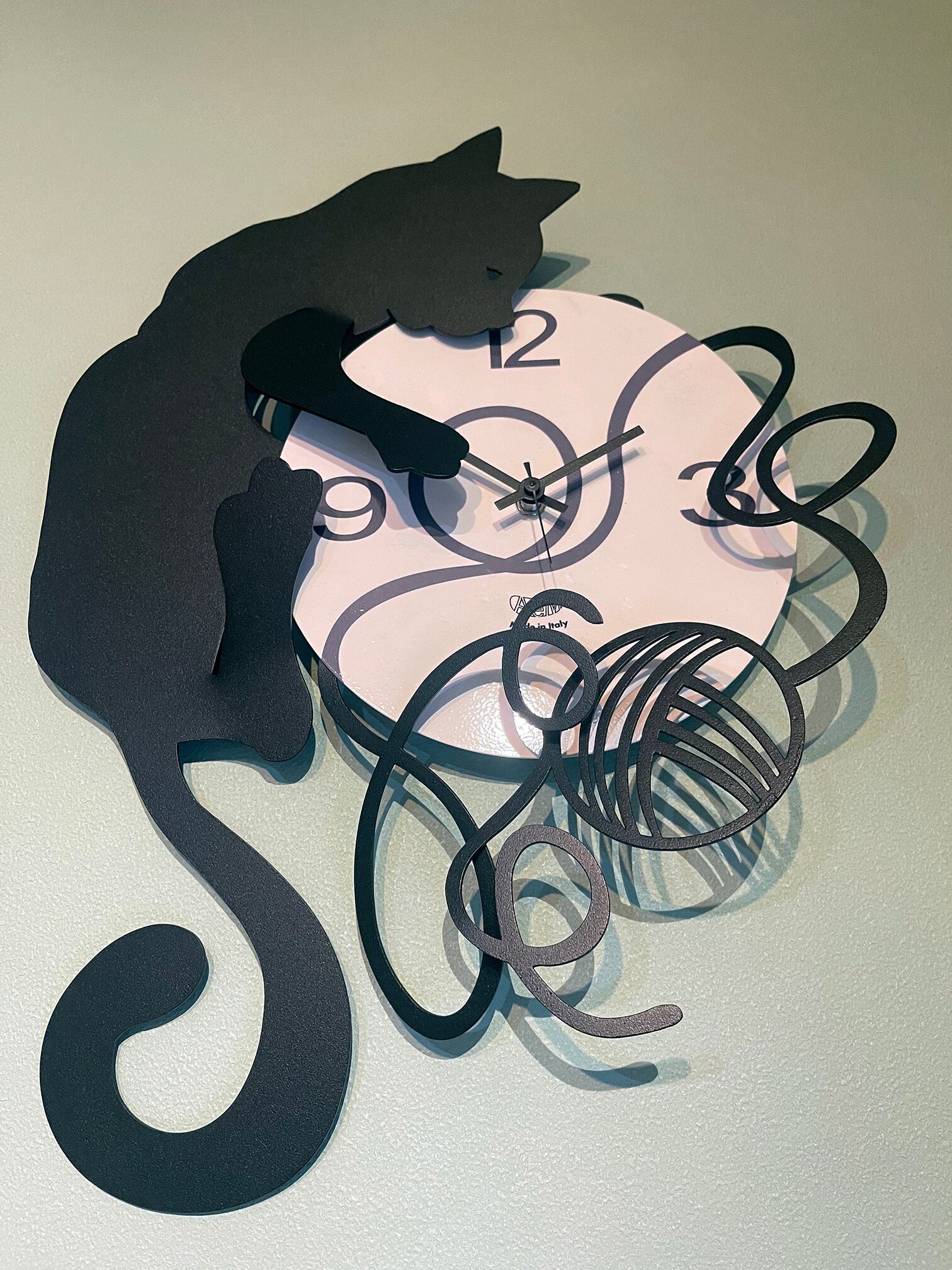 Wall clock Gatto Gomitolo イタリア製 掛け時計。