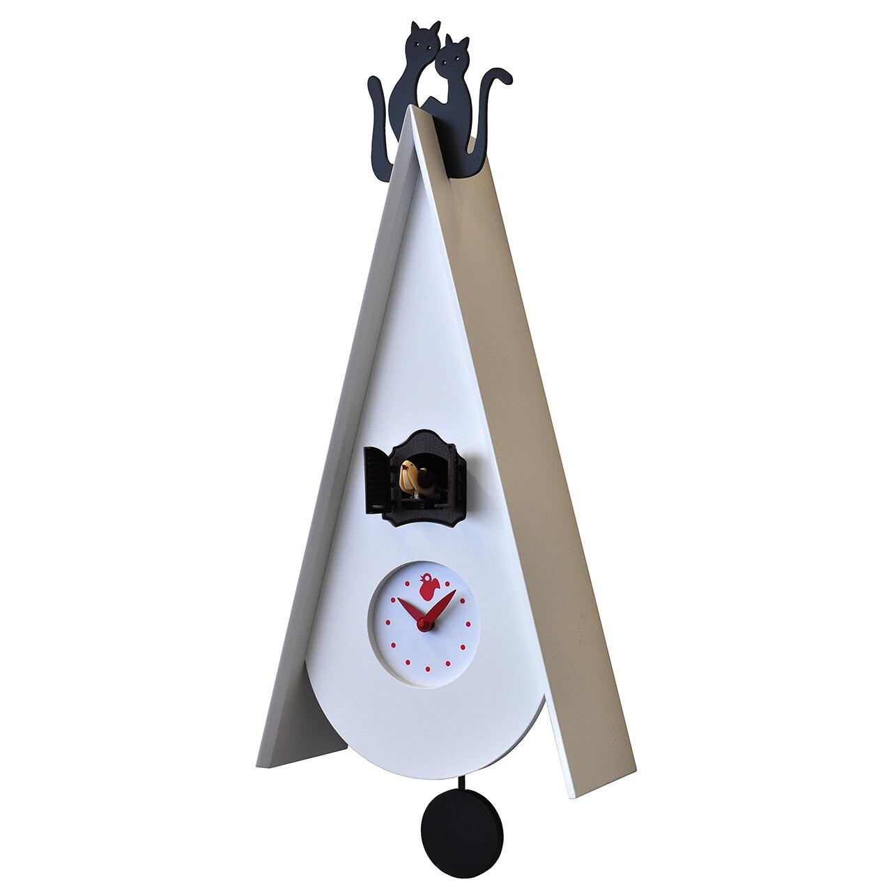 【PC-1106】鳩時計 振り子時計 輸入時計 ホワイト 猫 輸入インテリア イタリア