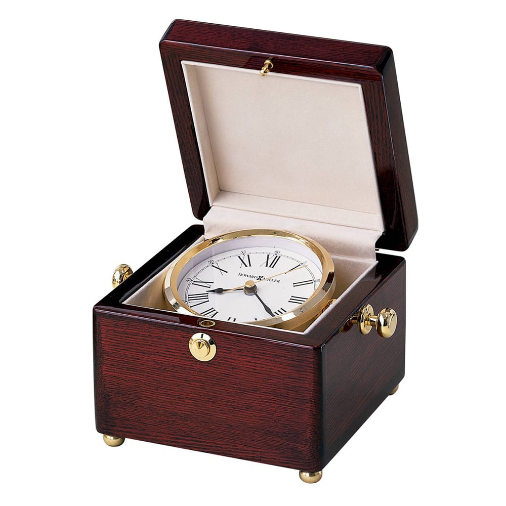 ローズウッド仕上げのボックスに収められた置き時計です。