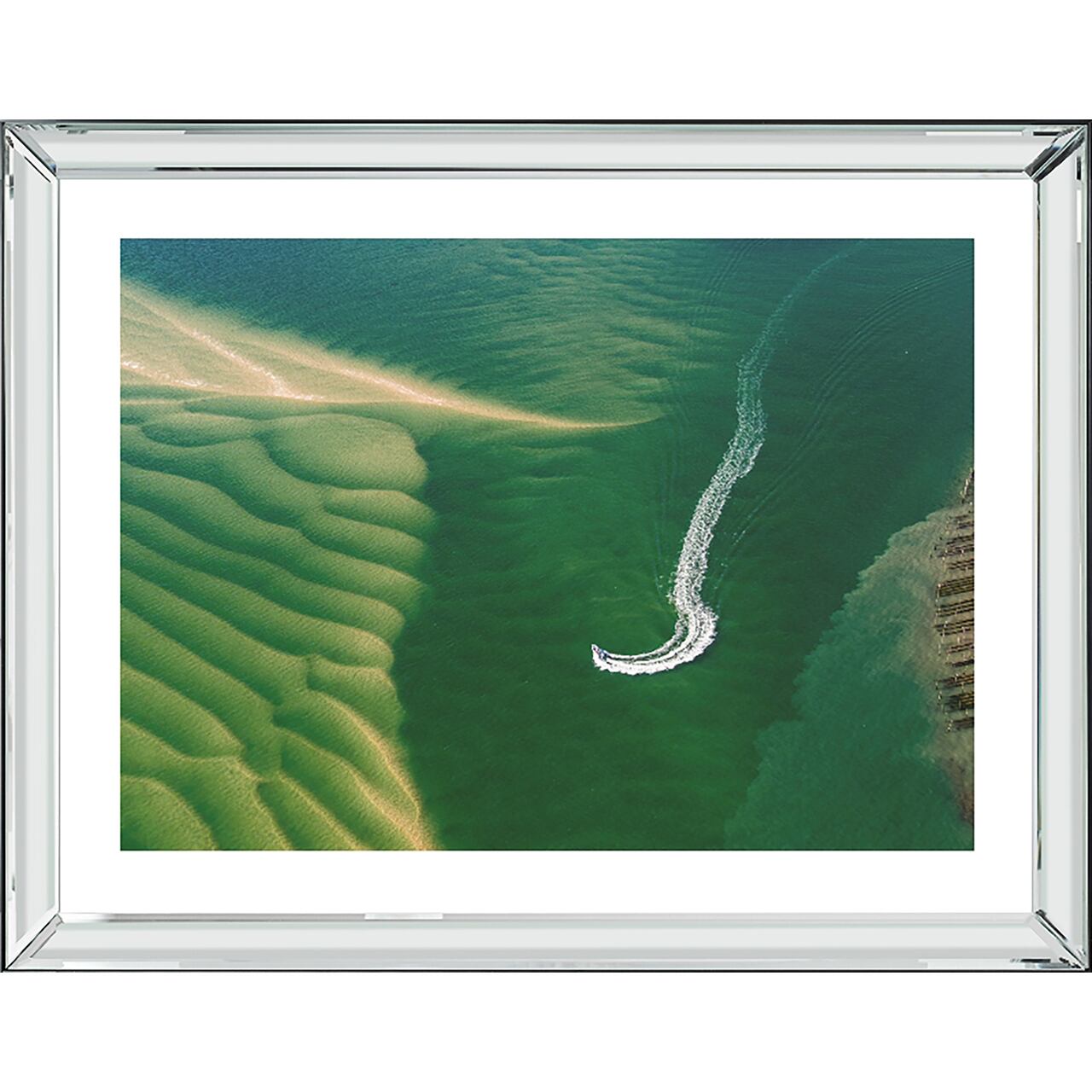 豪華なエッジ加工されたミラーが施された額縁にセットされたピクチャーアート。
