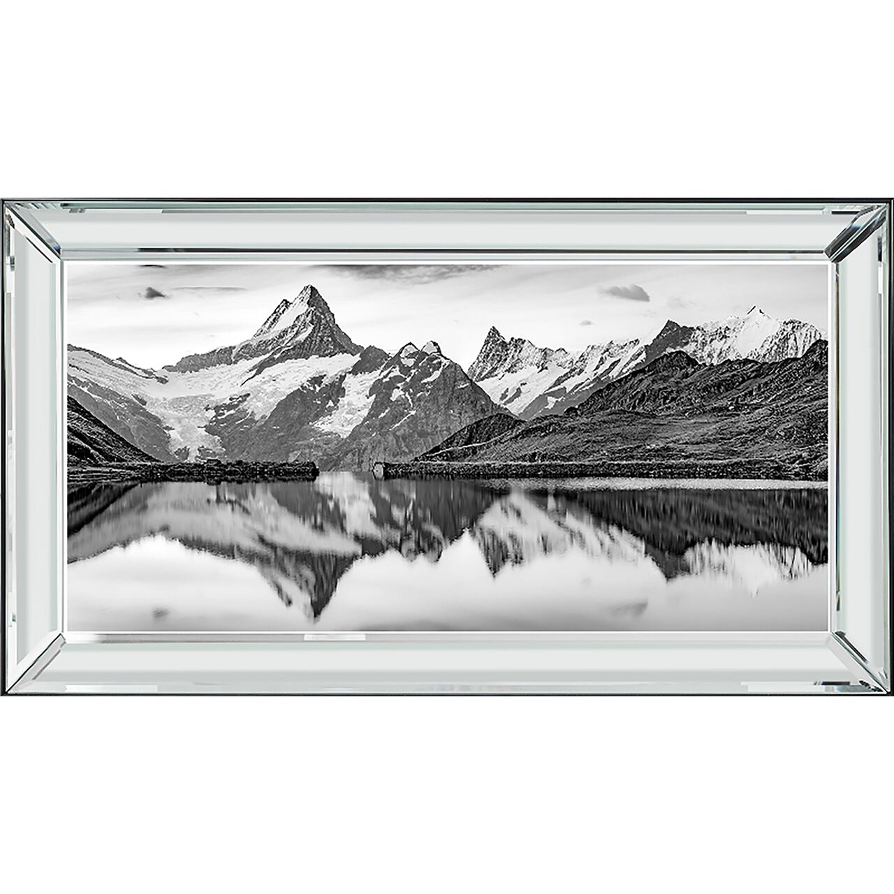 豪華なエッジ加工されたミラーが施された額縁にセットされたピクチャーアート。
