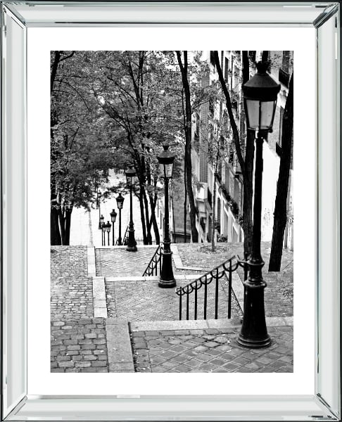 豪華なエッジ加工されたミラーが施された額縁にセットされたピクチャーアート。