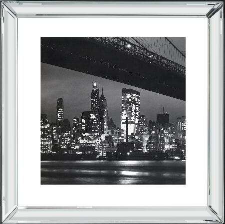 豪華なエッジ加工されたミラーが施された額縁にセットされたピクチャーアート。
